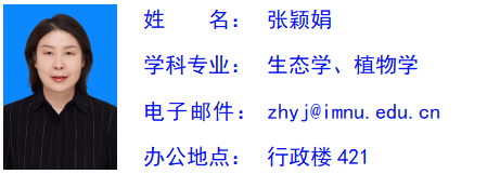张颖娟,女,汉族,1970年生,呼和浩特人,理学博士,bwin必赢中国官网教授,硕士生导师。主要研究领域为植物生态学,恢复生态学,学科教学(生物)等。主持国家自然科学基金项目1项、省部级科研项目10余项。发表研究论文30余篇,出版学术著作3部。