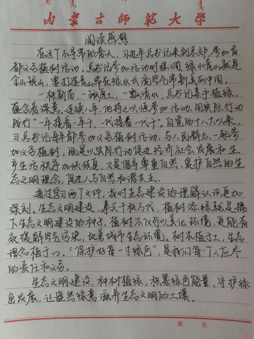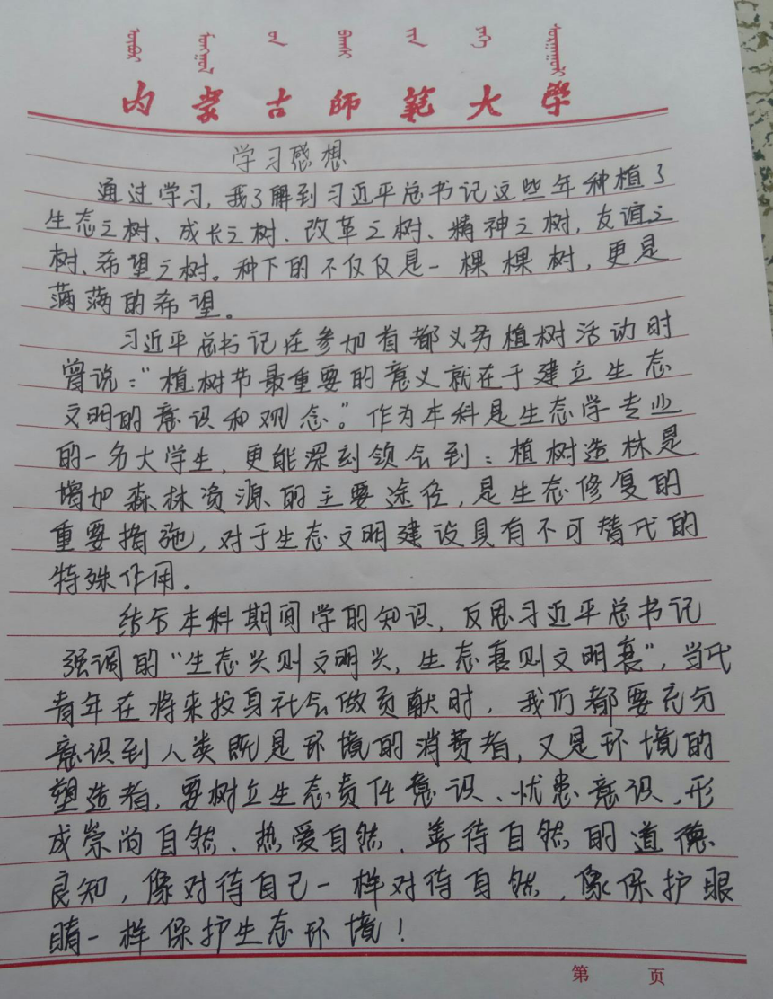 通过此次主题党日活动,非师范类学生党支部更加深入的学习了习近平新时代中国特色社会主义思想,巩固拓展了“不忘初心、牢记使命”主题教育理论学习成果,推动了疫情期间的组织生活稳中有序开展。学生党员们纷纷表示,要以“功成不必在我”的精神境界和“功成必定有我”的历史担当不断夯实专业基础,积极宣传生态文明理念,从自己做起,从现在做起,一起为打造青山常在、绿水长流、空气常新的美丽中国尽一份力量。
