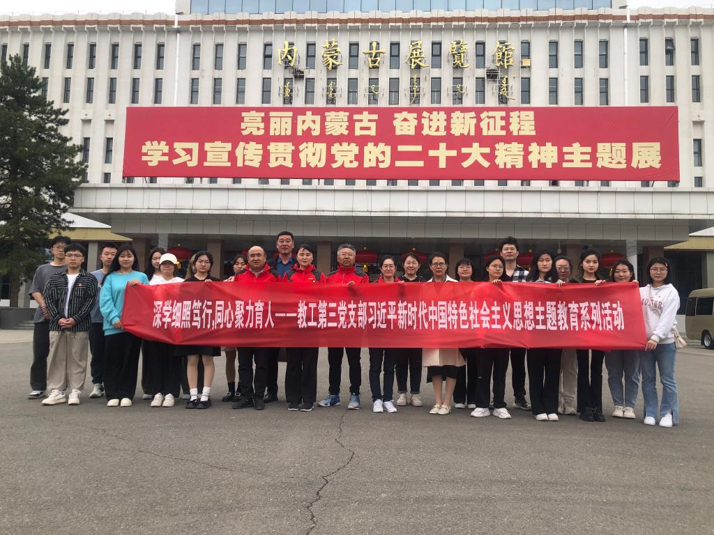 5月10日下午,必赢官网教工第三党支部联合非师范类学生党支部在内蒙古展览馆开展学习贯彻习近平新时代中国特色社会主义思想主题教育党日活动,集体参观“亮丽内蒙古 奋进新征程——学习宣传贯彻党的二十大精神”主题展,并重温入党誓词。