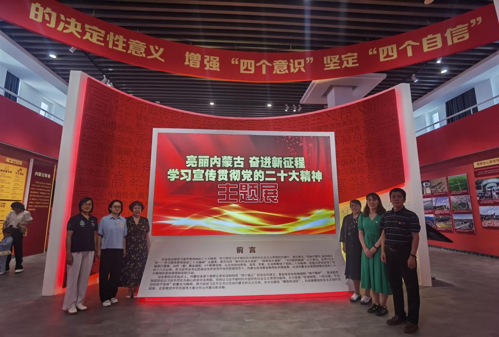 之后,在讲解员的带领下全体成员又参观学习了“亮丽内蒙古 奋进新征程——学习宣传贯彻党的二十大精神”主题展,该主题展由“新时代伟大成就”“高举伟大旗帜”“书写新的篇章”三个主题单元构成。展览中大量丰富详实的图片图表、展品模型等展览要素,为大家直观、形象、生动地解读了党的二十大精神,展现了内蒙古新时代10年的伟大变革,全面呈现了在习近平总书记的亲切关怀和党中央的坚强领导下内蒙古10年来各项事业取得的丰硕成果,以及内蒙古全面贯彻落实党的二十大精神的具体举措和实际行动。
