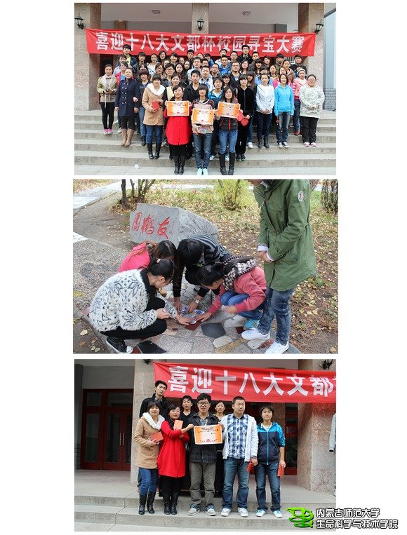 最后10生科汉代表队在找寻到全部要素回到终点后夺得第一,12生科蒙和10技术2班分获二三名,其余每支队伍都回答了十八大的相关问题并寻到了宝物。