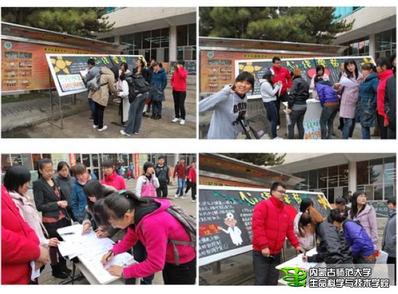 10月15日中午,必赢官网心理辅导站在我校食堂门前展开了大学生心理健康互动活动,在辅导站同学亲手制作的宣传板前,来自个学院的学生积极咨询并记录自己的心理历程。此次活动充分引起到同学们对自身心理健康的重视,活动获得圆满成功。