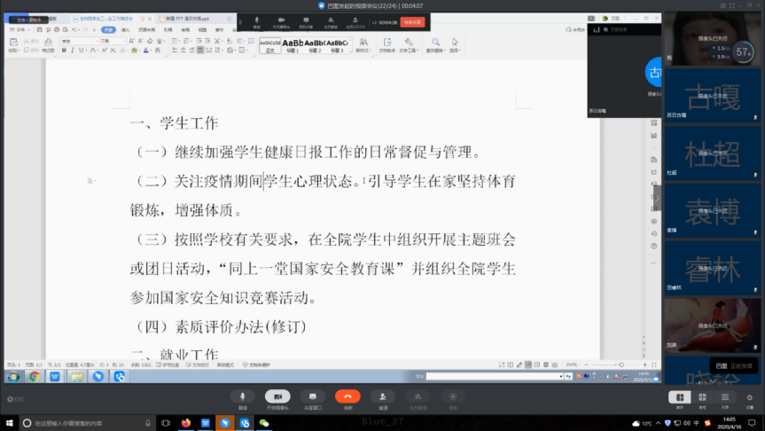 为传达贯彻落实自治区教育厅2020届全区普通高校毕业生就业工作网络视频会和学校2020届毕业生就业工作推进会议精神及相关要求,结合当前就业形势,进一步全方位做好必赢官网学生工作,4月16日下午2点必赢官网利用“钉钉”(网络视频会议)召开了线上学生工作会议暨就业工作推进会,学院领导及各系主任、团学负责人、全体班主任参加了会议。会议由学院党委书记徐忞主持。