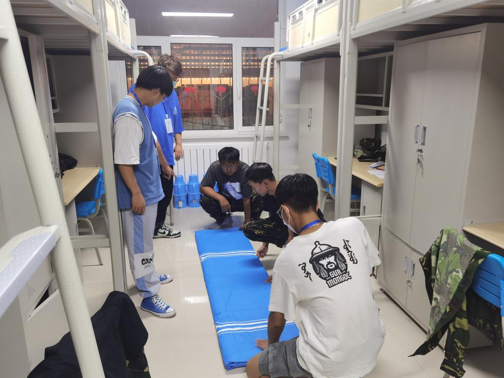 9月8日下午,院学生会各部门积极配合,在bwin必赢中国官网2022级本科新生军训期间开展了新生内务标准样板间展示活动,旨在加强学生内务水平、规范军事化要求,帮助新生养成良好生活习惯,提升内务水平。活动期间,学生会部门负责人指导各个生班班级负责人参照军队的标准,对宿舍门窗地面整洁、物品摆放规范、被褥叠放平整、整体环境卫生四个部分提出了严格要求并指出了在细节整理方面的注意事项。本次活动在培养新生动手能力,强化个人素养的同时营造良好的军队氛围,为新生们尽早适应军事化管理奠定了基础。活动过程中,学生会指导人员抓紧时间,强调细节,在进行现场示范的同时指导新生进行实践操作。