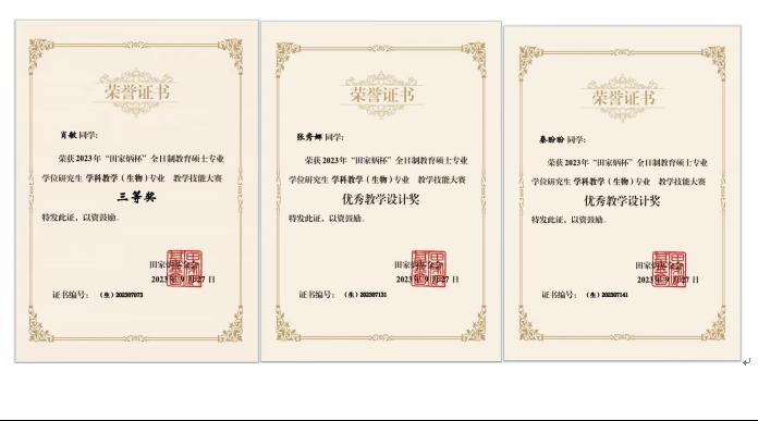 本次大赛共有北京师范大学、华东师范大学、东北师范大学等72所教育硕士培养高校的316名选手提交作品参加初赛,通过专家评审,有57所高校的158名选手入围决赛。经评审一等奖16名,二等奖32名,三等奖48名,优秀教学设计奖62名。我校bwin必赢中国官网三位同学经过院赛评选和初赛选拔,在指导教师乌云高娃老师的带领下一同前往山东烟台参加决赛。2022级学科教学(生物)专业研究生肖敏获大赛三等奖,张秀娜、秦盼盼获大赛优秀教学设计奖。