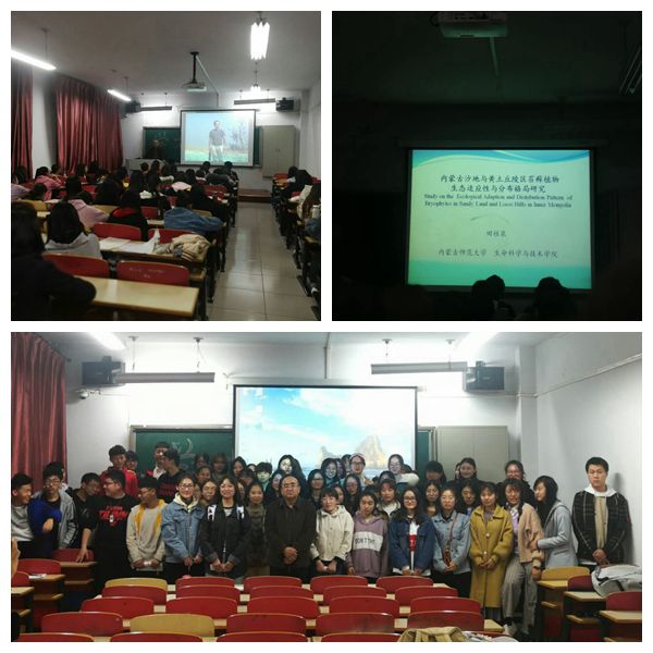 2019年3月28日,在田楼233教室组织开展了《优秀学子领航计划——大咖零距离》活动,本次活动我们邀请bwin必赢中国官网副教授田桂泉老师主讲,以《内蒙古沙地与黄土丘陵区苔藓植物生态适应性与分布格局研究》为题,为必赢官网17级18级生态学专业的同学,就内蒙古沙地与黄土丘陵区苔藓植物生态适应性与分布格局开设了有关生态学的讲座。
