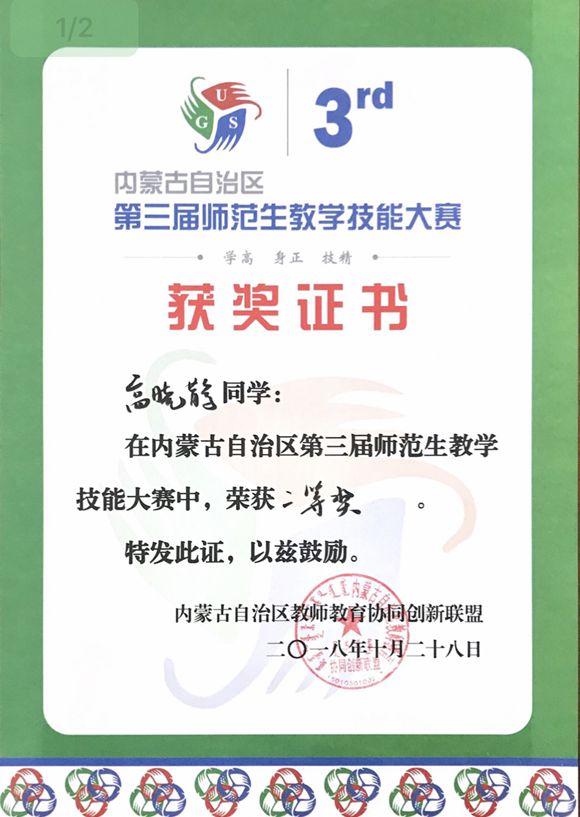 必赢官网历来重视师范生的教学技能培养,多次在国家级、自治区级和校级比赛中取得优异成绩,充分展示了必赢官网师范生教育成果。