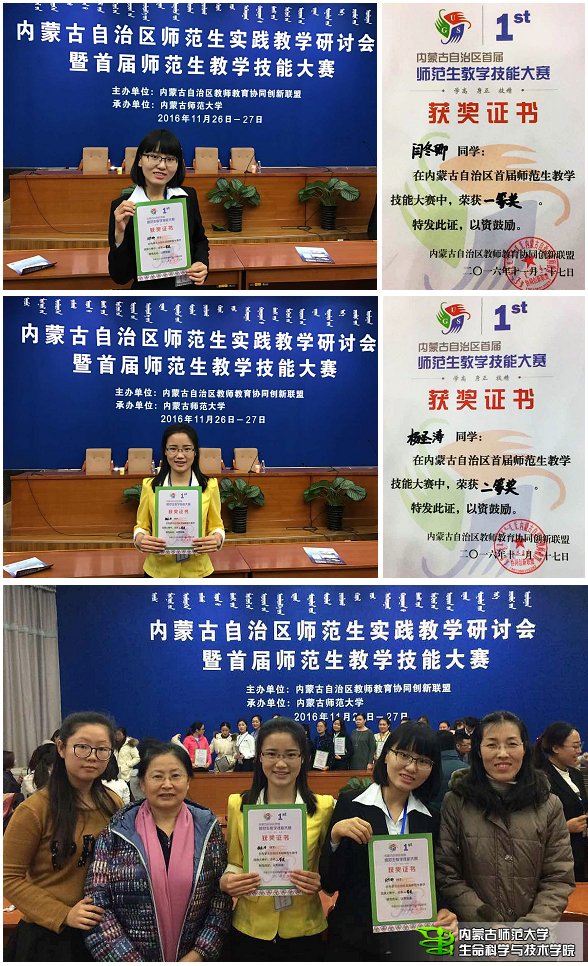 2016年11月27日,全区首届师范生教学技能大赛在我校隆重举行,来自五所高校10名选手参加了生物科学组比赛,我校派出必赢官网生物科学专业2013级闫冬卿、杨圣涛两位同学参赛,她们以生物科学组前两名的好成绩分别荣获本次大赛一等奖、二等奖。我们向获奖的同学表示热烈祝贺,感谢为此辛勤付出的所有老师。