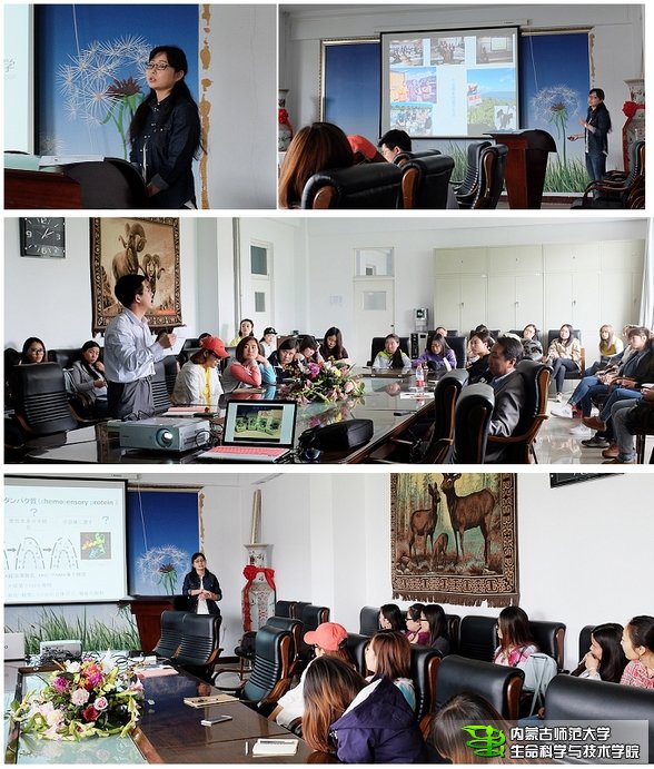 4月26日中午,必赢官网在学院会议室举办了杰出校友报告会,邀请日本室兰工业大学工学系博士生、必赢官网生态学专业2009级校友温都日格作了“弓背蚁感觉器化学感受蛋白的结构和功能解析”为题目的报告,院办主任田睿林博士主持报告会并介绍了温都日格校友,50余名师生聆听了报告。