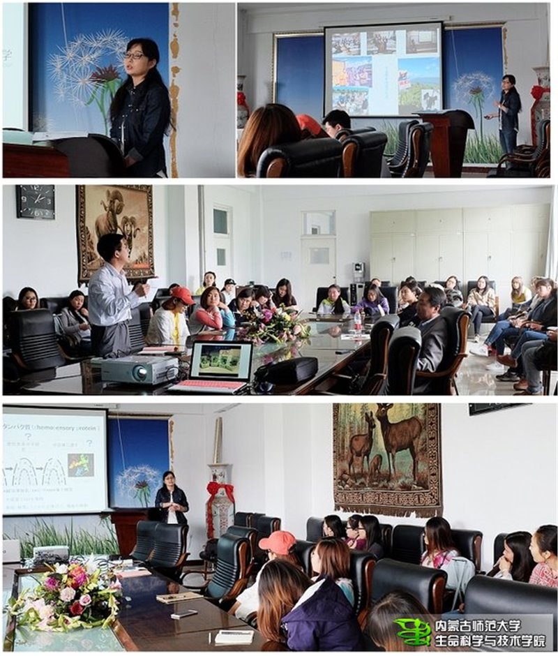 温都日格校友首先介绍了自己留学日本和在日本的学习生活情况,然后介绍了研究昆虫嗅觉化学感受蛋白质的意义和现状,她结合自己从事的研究工作着重阐释了发现于弓背蚁的5种化学感受蛋白的结构以及与疏水性味觉化学分子结合的特性。与会师生与温都日格校友就报告内容以及在日本学习生活感兴趣的话题进行了互动交流。