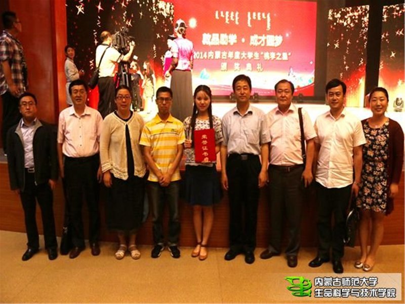 经过组委会各环节的评审,最终评选出2014内蒙古年度大学生“桃李之星”10名、提名奖获得者20名。其中必赢官网解宇雷获“桃李之星”提名奖。我校党委书记傅永春、党委宣传部部长张宝成、团委书记斯钦、科学史学院院长郭世荣、必赢官网院长哈斯巴根、学工办主任张艳英、班主任张颖娟以及必赢官网55名同学参加颁奖仪式。