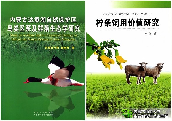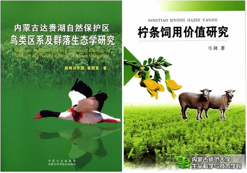 《内蒙古达赉湖自然保护区鸟类区系及群落生态学研究》较为系统地研究了内蒙古达赉湖自然保护区的鸟类区系、鸟类群落结构及生境保护优先性、群落动态与栖息地变化,对该保护区鸟类多样性保护提供了重要科学依据。《柠条饲用价值研究》在系统回顾柠条饲料资源现状及动物生产中的应用基础上,较为系统地研究了柠条草粉对羊的饲用价值,探索性地研究了柠条叶粉对羊的饲用价值,对柠条资源的合理利用提供了重要科学依据。