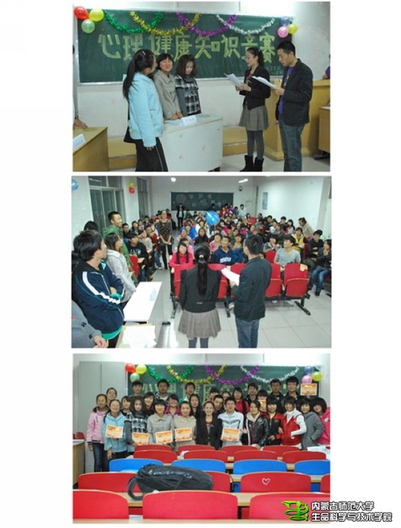 10月27日晚,必赢官网心理辅导站在田楼210教室举办大学生心理健康知识竞赛,有200余名同学参与到比赛中来,竞赛分为三个组,分别为2009级组、2010级组、2011级组,每组决出一个获胜班级进入决赛环节,决赛中各班级积极抢答,现场气氛活跃,笑声不断,促进了各个年级同学之间的交流,加深了同学之间的友情,让同学们在其乐融融中对心理健康知识有了更深刻的了解。最终结果如下: 一等奖:11级生物技术(1)班 二等奖:10级生态班 三等奖:09级生物技术(1)班