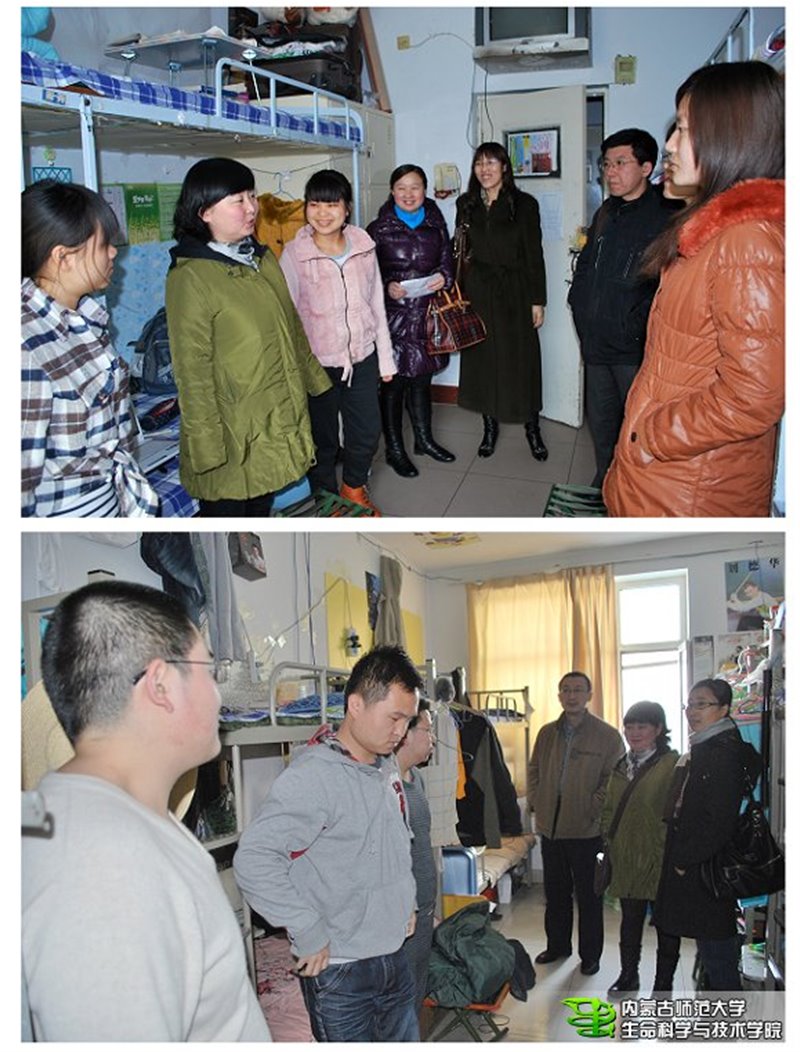 必赢官网党总支副书记、系主任、班主任老师们于3月7日和8日分别到男生宿舍和女生宿舍看望了同学们,进而对同学们的生活状况有了更具体的了解,同时也为女同学们送上了节日的祝福。