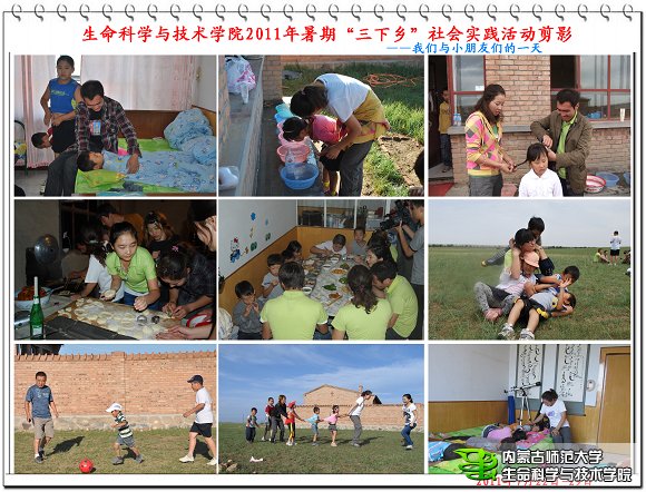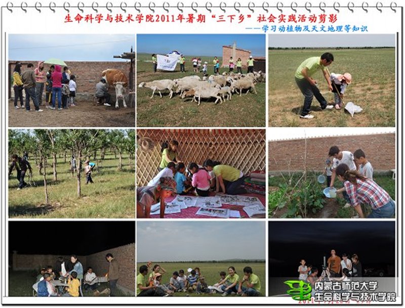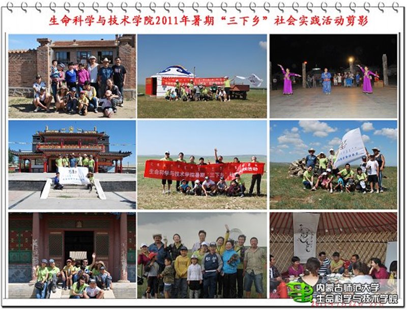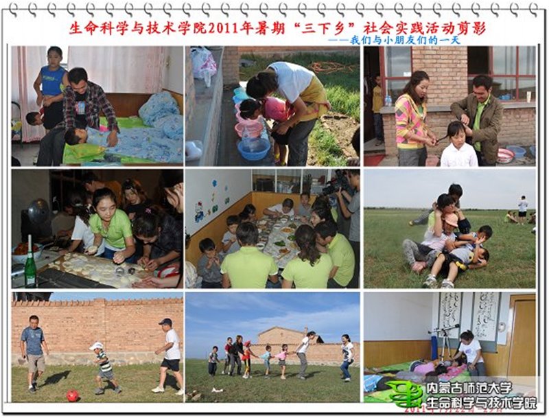 bwin必赢中国官网志愿者服务队于2011年7月22~29日期间赴达茂旗希拉穆仁镇开展了为期一周的暑期“三下乡”社会实践活动。本次社会实践活动与“熊宝宝夏令营”合作,同参加夏令营的小朋友们生活、学习、娱乐在一起,为孩子们介绍了有趣的动植物内容,传授了天文地理等科普知识,教授了优美动听的民族歌舞,并通过丰富的户外实践活动让孩子们更加亲近大自然,了解草原生活。大学生志愿者们还采集了部分植物标本,参观了普会寺、博物馆等地,在草原篝火晚会上表演了精彩的节目,在实践中检验了专业知识,体现了师范教育。