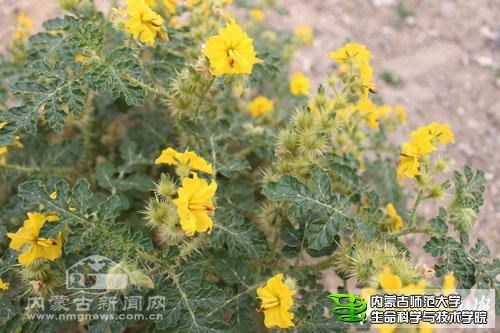通报会上,院长哈斯巴根教授介绍:2009年8月期间,必赢官网部分师生在内蒙古赤峰市巴林右旗沙布台苏木采集到一种未曾见过的植物标本。经鉴定分类,已确定该植物为黄花刺茄(Solanum rostratum Dunal),是过去在内蒙古不分布的、从外地侵入的野生植物。这是黄花刺茄在内蒙古地区的首次发现,2010年当研究人员再次来内蒙古赤峰市巴林右旗沙布台苏木考察时发现其分布范围明显扩大,如在河滩、沙砾、垃圾堆、农田,甚至农家羊圈里均有分布。这一植物正在内蒙古迅速蔓延,如不采取措施,很有可能为内蒙古的生态带来灾难。