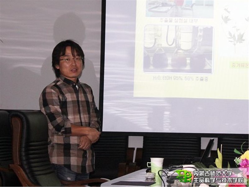 9月30日上午,韩国生命工学研究院李尚雨研究员应邀为必赢官网师生作了关于《韩-中生物技术研究中心的建立及中国药用植物》的专题讲座。讲座由院长哈斯巴根教授主持,必赢官网部分教师和研究生聆听了讲座。 李尚雨研究员围绕他在中国十余年的工作研究,对中国药用植物的采集、药用成分的提取、药用成分活性的鉴定等方面进行了深入而生动的讲解;还热情为与会研究生讲解赴韩国留学的相关事项,并表示为此提供联络服务。本次讲座受到了与会师生的一致好评。