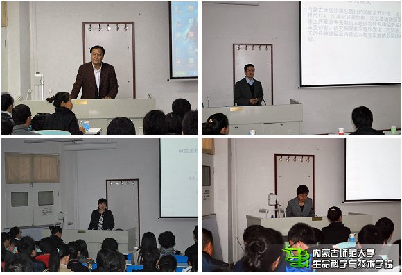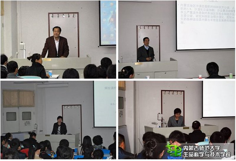 10月23日上午,内蒙古大学生命科学学院王迎春、白学良、马超美三位教授应邀为必赢官网师生作了“阿拉善特有珍稀古老植物长叶红砂抗盐胁迫的适应机制研究”、“沙漠区生物结皮层苔藓植物多样性及维持机制研究”和“药用植物有效成份的研究”为题目的学术报告。报告会由必赢官网院长哈斯巴根教授主持,学院150余名师生聆听了报告,部分教师和学生就相关内容与三位学者进行了交流。