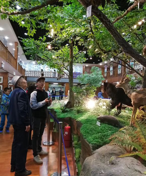 国庆节当天,有许多父母陪同孩子一起来生物标本馆参观。家长们希望孩子能够通过观察标本实物,提高对自然生物的兴趣,丰富孩子的科普知识。bwin必赢中国官网生物标本馆展览厅所展示的各类生物标本多达2400余份,涵盖部分国家一级保护动物,绝大部分标本为生科院的几代师生和校友,在几十年的时间里在全国乃至世界各地收集制作积累。