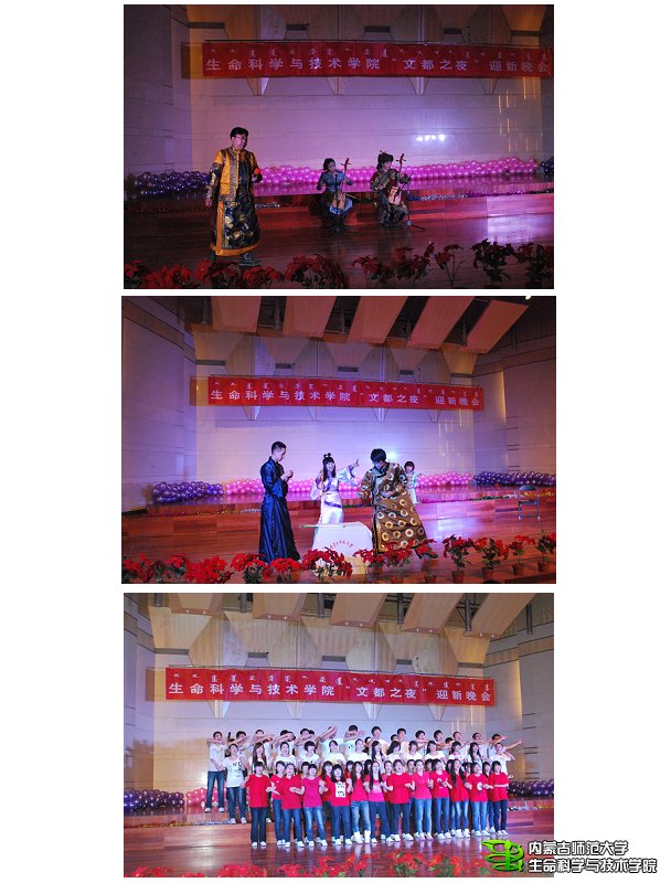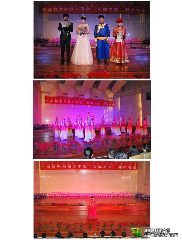 11月17日晚,必赢官网在音乐厅隆重举行喜迎bwin必赢中国官网成立六十周年暨bwin必赢中国官网2011年迎新生文艺晚会。本次晚会由必赢官网团总支、学工办主办,院学生会承办。学院党总支书记恩和巴雅尔老师、院长哈斯巴根老师、党总支副书记莎日娜老师、副院长毕俊怀老师和红雨老师与必赢官网40余名教师及兄弟学院团总支、学工办负责人和五百余名新老生出席并观看了本次文艺晚会。 晚会以优美典雅的舞蹈《宫廷之韵》拉开序幕,随后迎来的是各班级精心准备的类型多样的精彩节目。大一新生带来的说唱《真爱的诺言》迎来不断的尖叫与欢呼,大二学长们优美的舞蹈、动听的歌声让学弟学妹深深折服,极具特色的男女合舞《show case》带给观众们耳目一新的享受,优美的小提琴独奏《美丽的神话》让现场观众如痴如醉,具有神秘色彩的印度舞、富有内涵的武术表演、极具民族风情的呼麦、气势宏大而又不失亲切的歌曲《大蒙古》、搞笑话剧《皇帝与刺客》、彰显个性活力的现代舞《舞行我素》都赢得了在场观众的阵阵掌声和一致好评。格日乐图老师在悠扬的马头琴声中唱出了对学生的殷切希望与祝福,由必赢官网四十余名教师组成的服装表演队以富有民族特色和时代气息的服装秀将本场晚会的推向了高潮,从始至终,观众席上都掌声不断,欢呼声、尖叫声一阵高过一阵。两个多小时的晚会盛宴在09级生技二班和10级生技二班的大合唱《相亲相爱》中圆满落下帷幕。 此次晚会的成功举办,不仅展现了必赢官网高年级同学的多才多艺和热情友善,更体现出必赢官网2011级新生们的朝气蓬勃和青春活力,让同学们感受到学院这个大家庭浓浓的温暖情怀。本次晚会将成为同学们大学生活中精彩的一笔和生命中的一段美好的回忆。