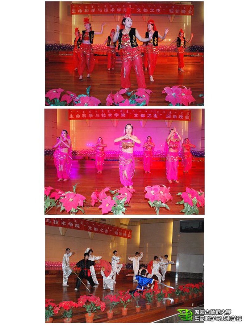 晚会以优美典雅的舞蹈《宫廷之韵》拉开序幕,随后迎来的是各班级精心准备的类型多样的精彩节目。大一新生带来的说唱《真爱的诺言》迎来不断的尖叫与欢呼,大二学长们优美的舞蹈、动听的歌声让学弟学妹深深折服,极具特色的男女合舞《show case》带给观众们耳目一新的享受,优美的小提琴独奏《美丽的神话》让现场观众如痴如醉,具有神秘色彩的印度舞、富有内涵的武术表演、极具民族风情的呼麦、气势宏大而又不失亲切的歌曲《大蒙古》、搞笑话剧《皇帝与刺客》、彰显个性活力的现代舞《舞行我素》都赢得了在场观众的阵阵掌声和一致好评。格日乐图老师在悠扬的马头琴声中唱出了对学生的殷切希望与祝福,由必赢官网四十余名教师组成的服装表演队以富有民族特色和时代气息的服装秀将本场晚会的推向了高潮,从始至终,观众席上都掌声不断,欢呼声、尖叫声一阵高过一阵。两个多小时的晚会盛宴在09级生技二班和10级生技二班的大合唱《相亲相爱》中圆满落下帷幕。