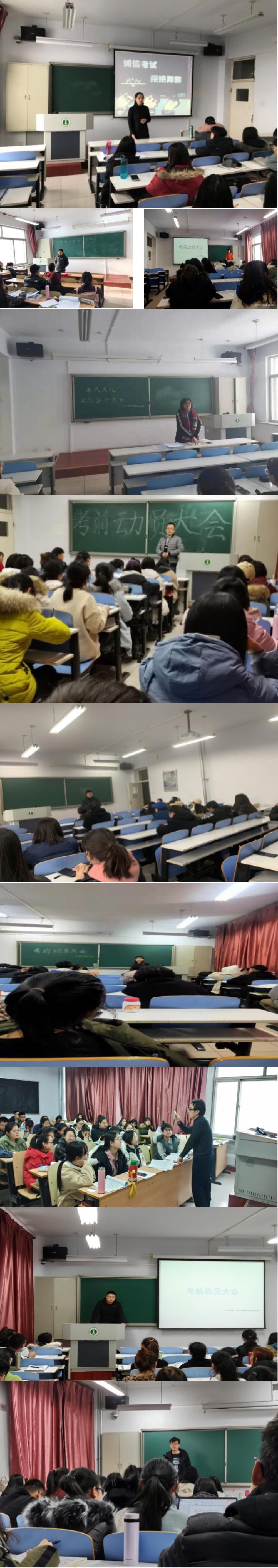为营造良好的期末考试氛围,让同学们自觉遵守考风考纪,为本学期的学习画上圆满句号,2019年12月,我院组织各个班级陆续召开考前动员会暨考风考纪教育会议。 希望通过此次会议,同学们能够加强自我管理,制定合理的考前复习计划,充分利用好复习时间,讲究复习方法,提高复习效率,诚信对待每一门考试,杜绝作弊行为。以实力争取优异成绩,以诚信展现良好学风。同时借此机会让每一个同学将诚信铭记在心,诚信考试,诚信做人,自觉践行社会主义核心荣辱观,做合格的“四有青年”。