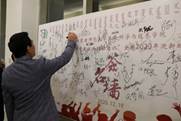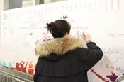 晚会开始前,师生在入口签名墙处签名留念