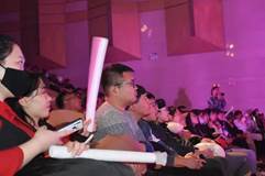 进入互动游戏环节,台下观众进行抛绣球并击鼓传花,气氛掀至高潮,幸运选手上台接受挑战,并由徐忞老师上台为拥有好运的同学们颁奖,其他同学也向获奖选手表示了由衷的羡慕与祝福。
