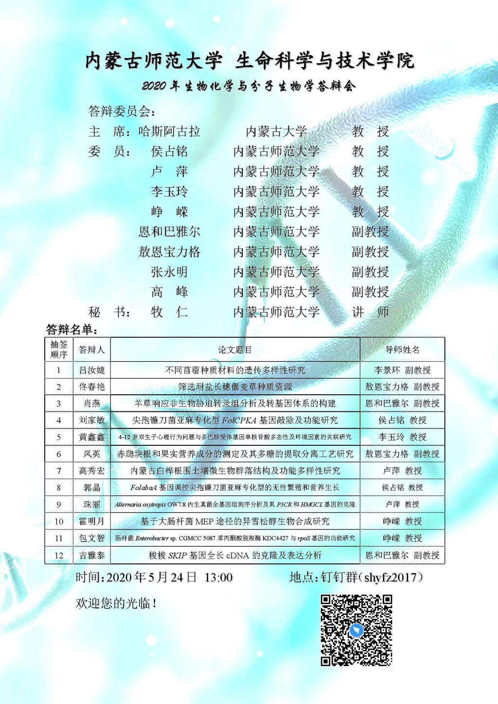 bwin必赢中国官网2020年生物化学与分子生物学答辩会