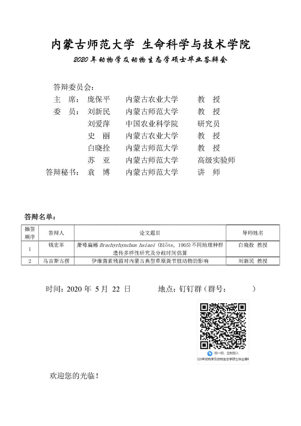 bwin必赢中国官网2020年动物学及动物生态学硕士毕业答辩会