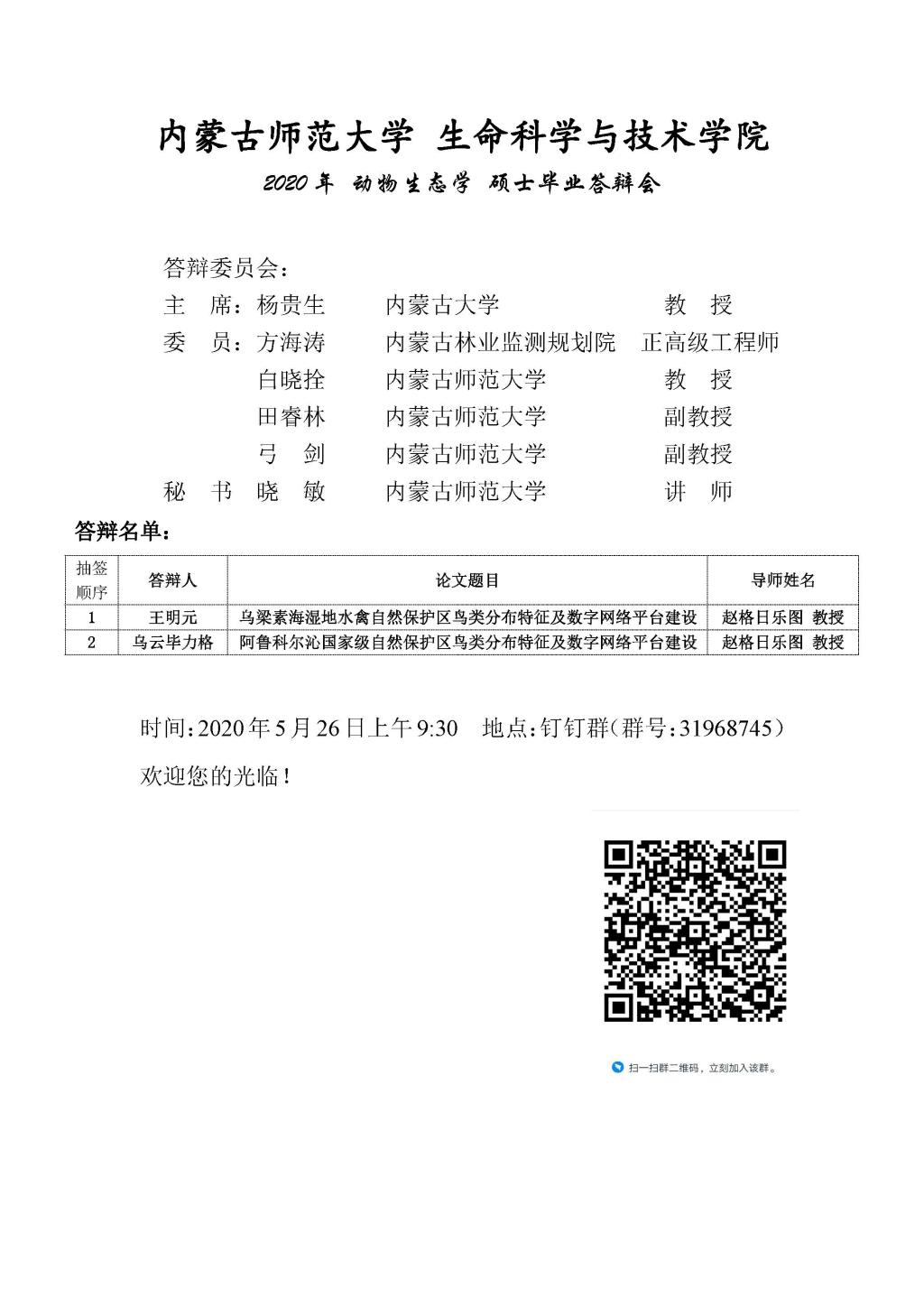 bwin必赢中国官网2020年动物生态学硕士毕业答辩会