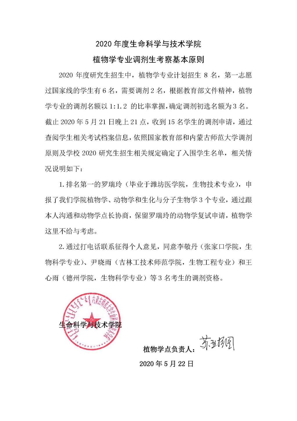 2020年国家研究生招生考试bwin必赢中国官网植物学、动物学、生物化学与分子生物学、生态学调剂原则