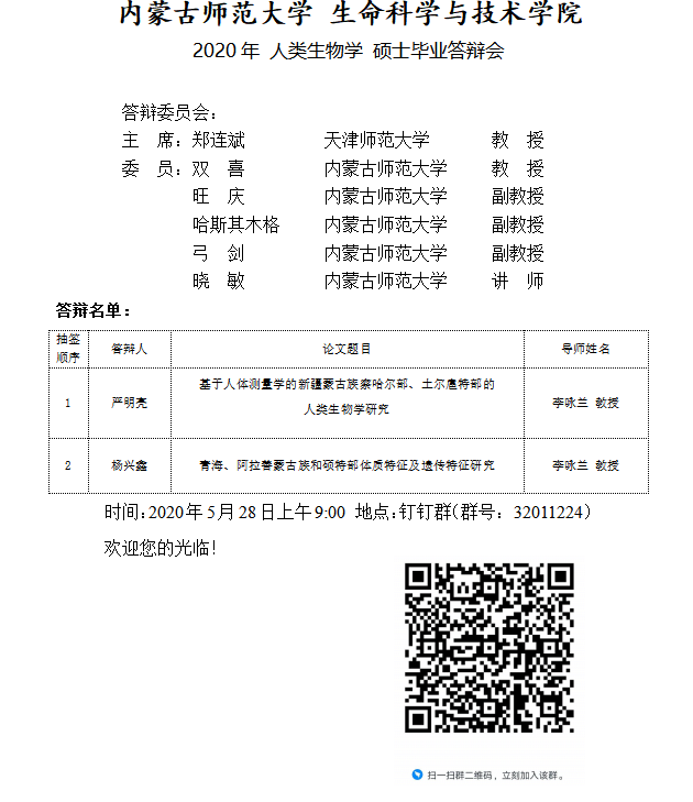 bwin必赢中国官网2020年人类生物学硕士毕业答辩会
