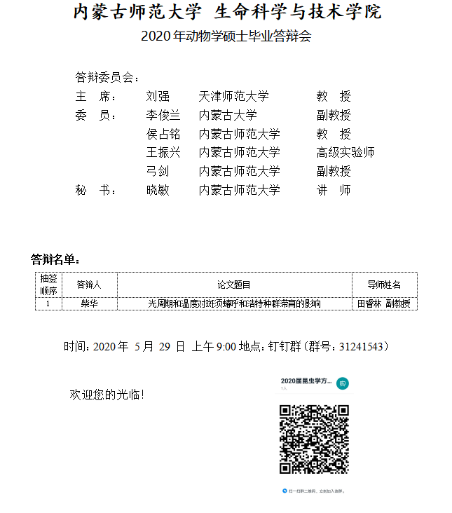 bwin必赢中国官网2020年动物学硕士毕业答辩会