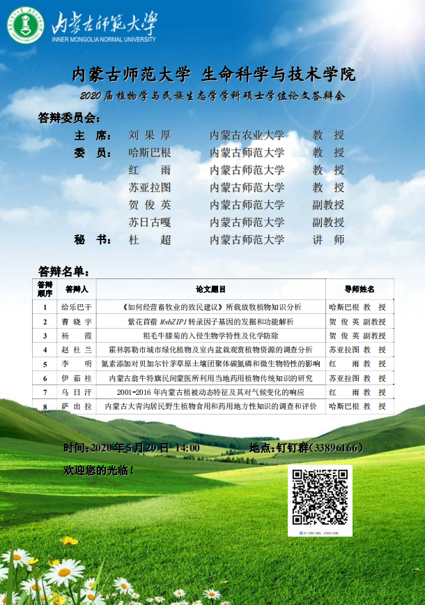 bwin必赢中国官网2020届植物学与民族生态学学科硕士学位论文答辩会