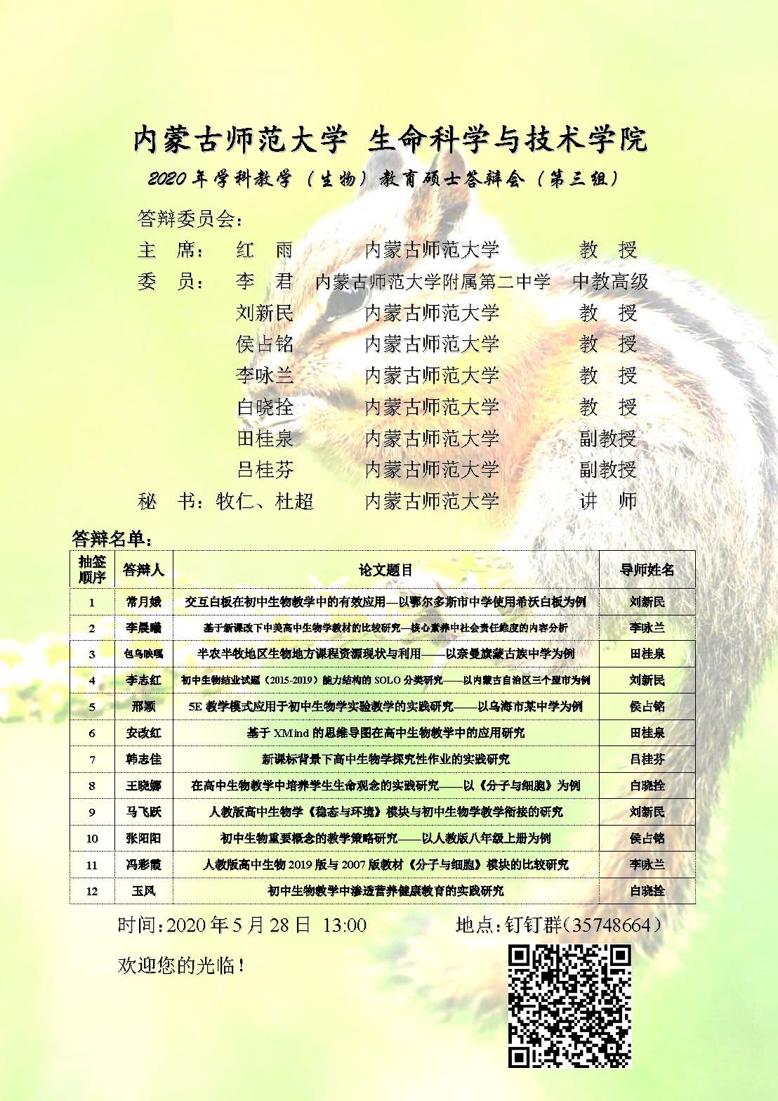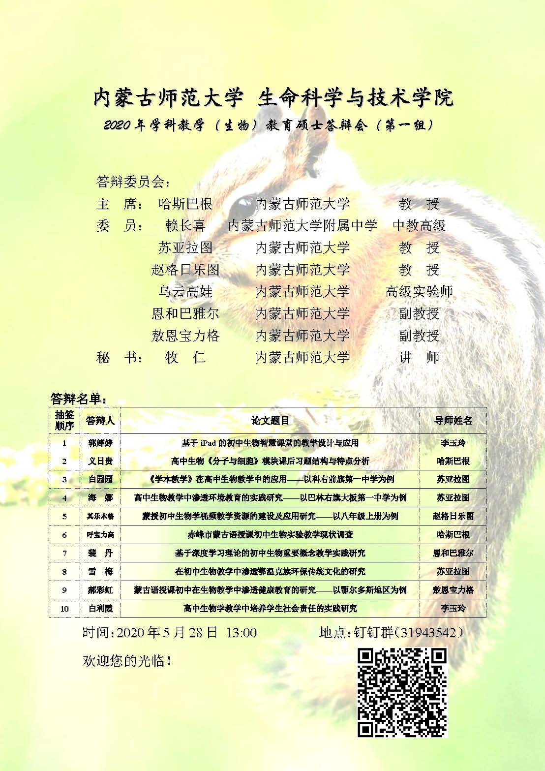 bwin必赢中国官网2020年学科教学(生物)教育硕士答辩会