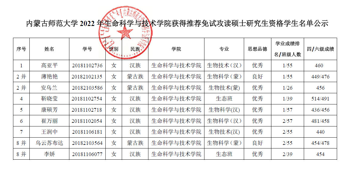3. 所有成绩有一次低于60分或必修课成绩平均分低于75分者,不符合本院推免条件,通行蒙语、汉语授课班。