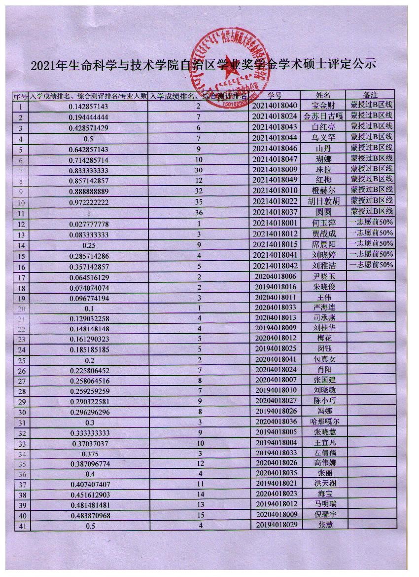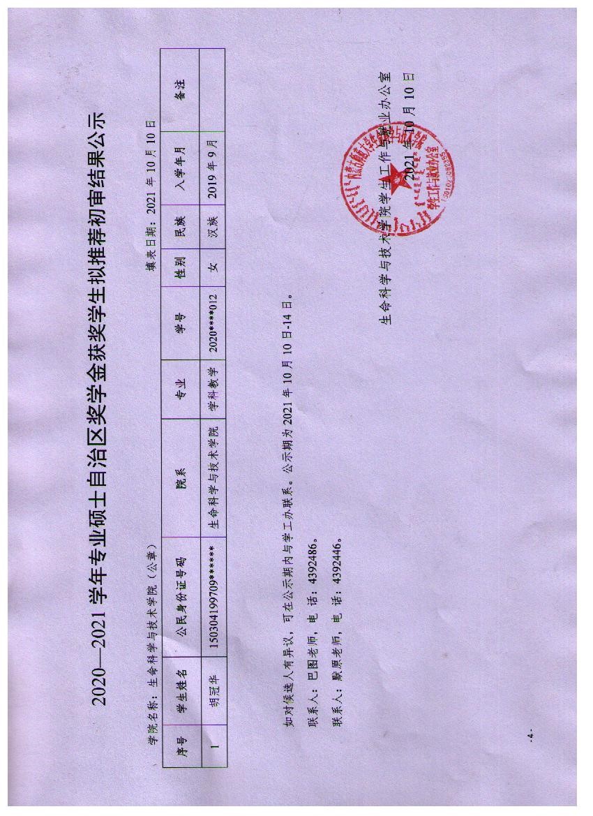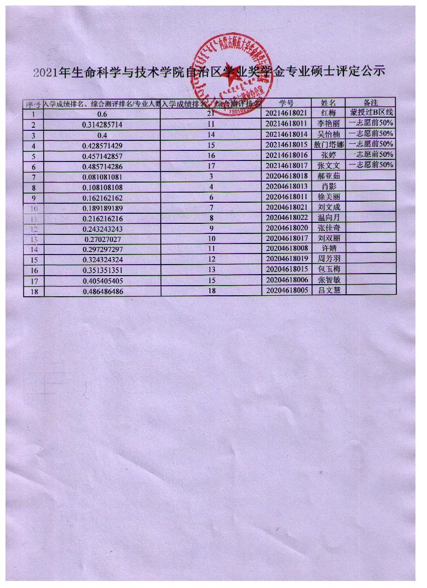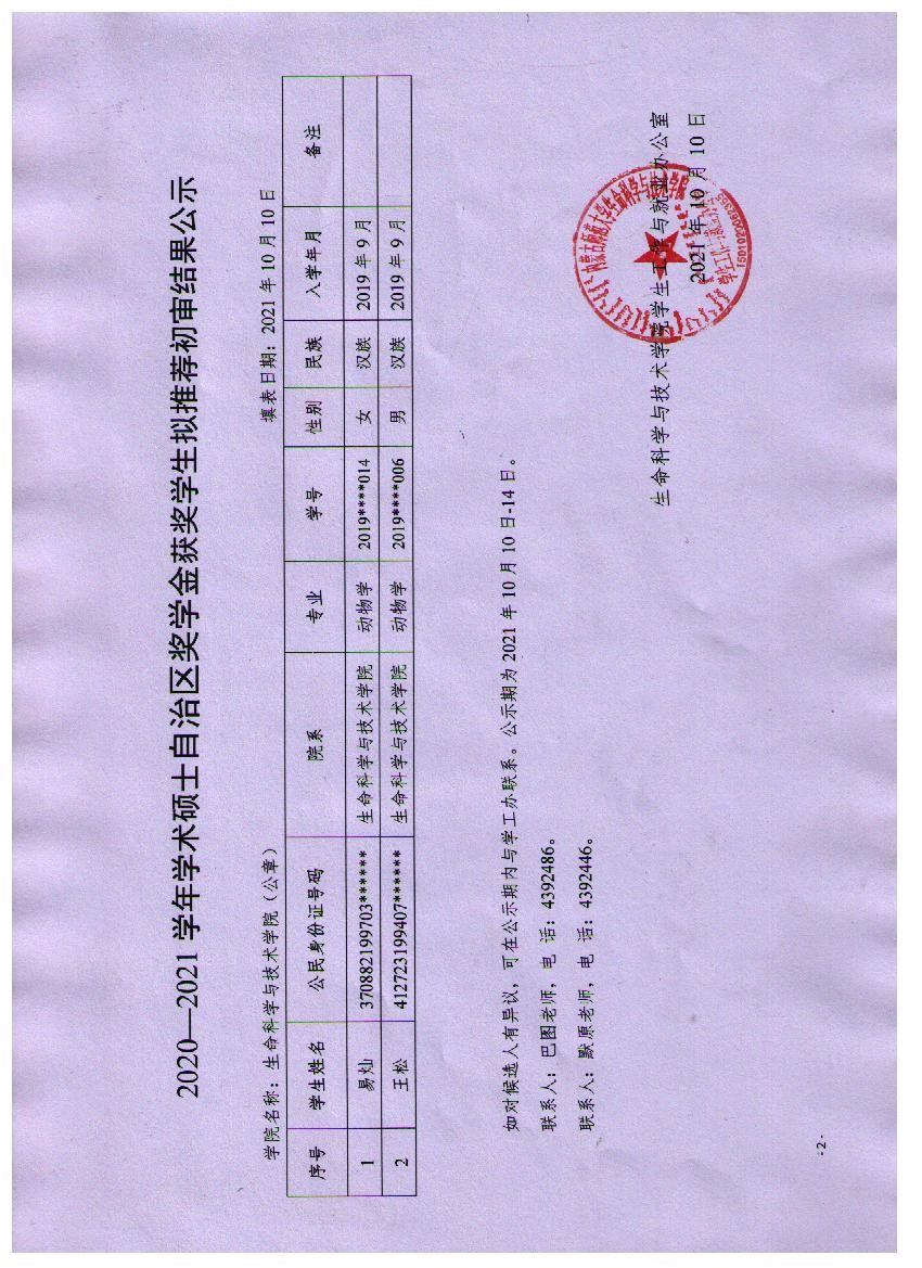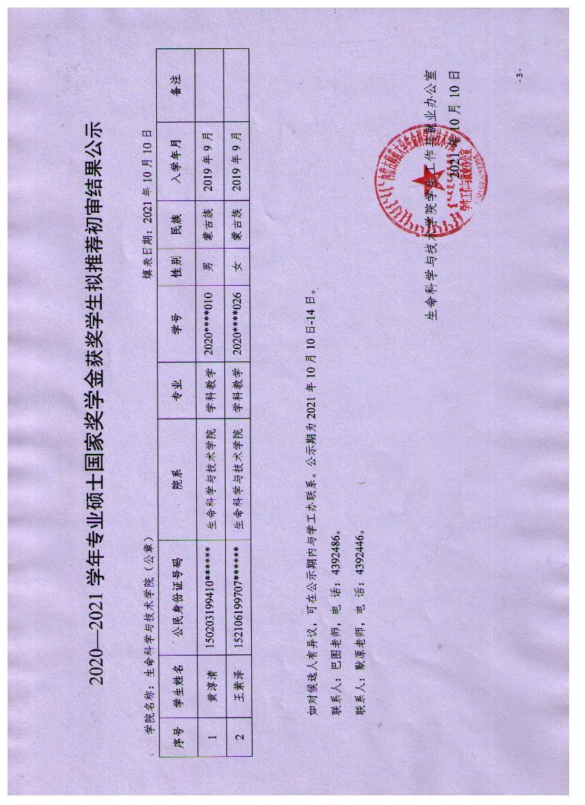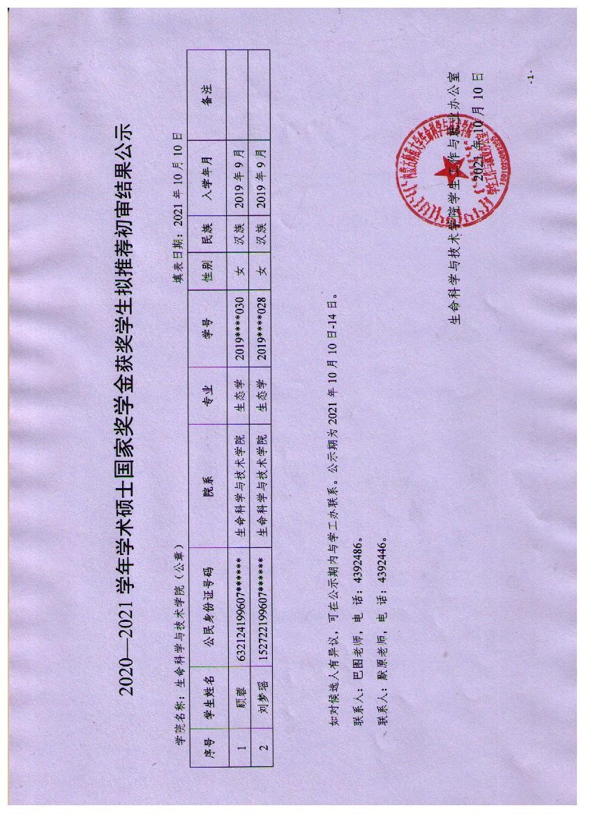 2020-2021学年bwin必赢中国官网硕士各类奖学金获奖学生拟推荐结果公示