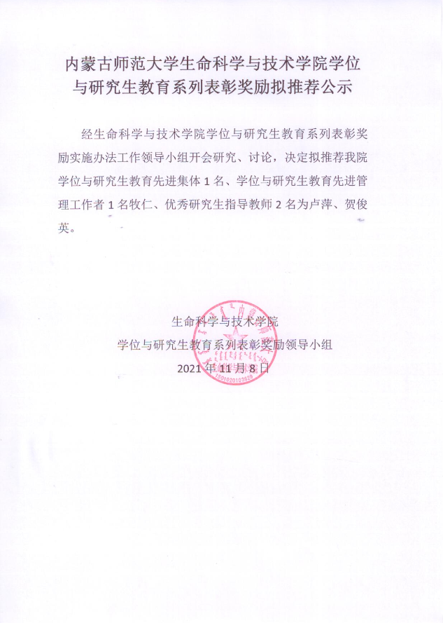 bwin必赢中国官网学位与研究生教育系列表彰奖励拟推荐公示