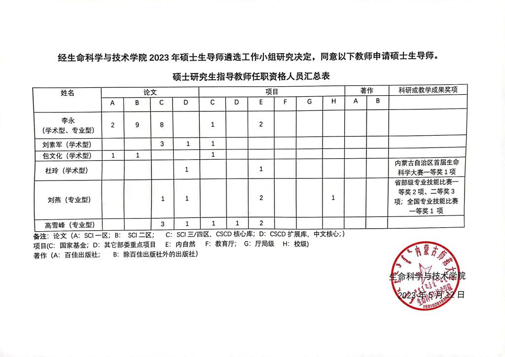 bwin必赢中国官网2023年硕士生导师遴选公示名单