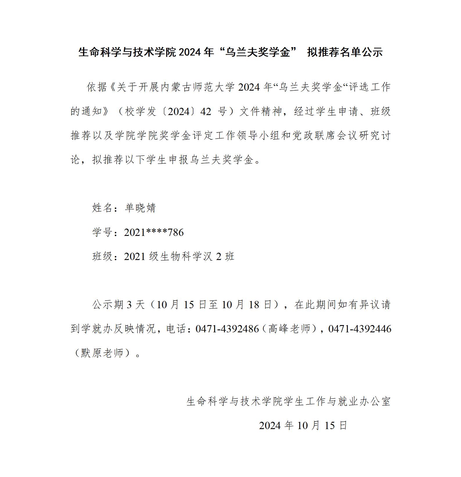 bwin必赢中国官网2024年“乌兰夫奖学金” 拟推荐名单公示